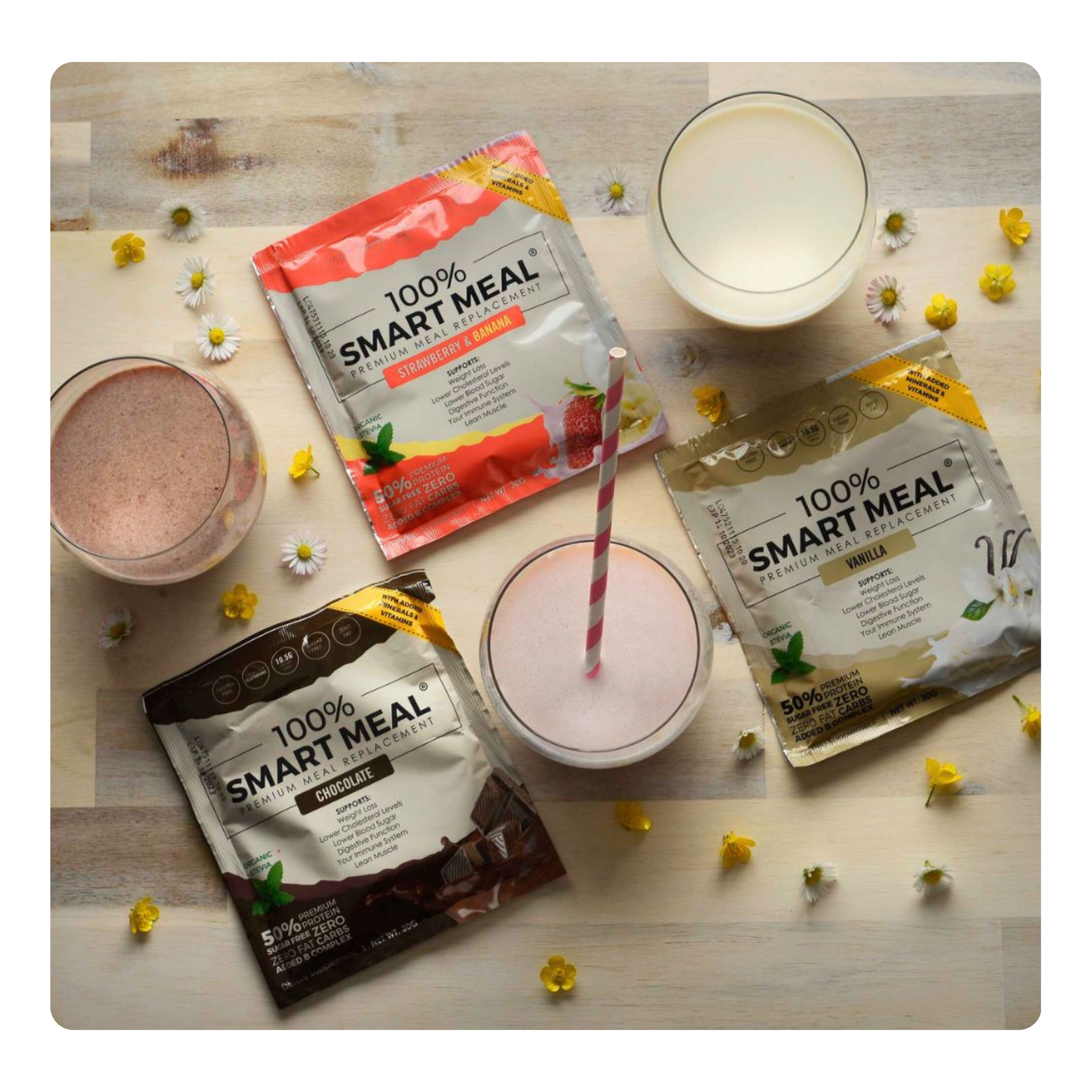 100% Smart Meal je uravnotežen zamjenski obrok koji sadrži sve ključne nutrijente – proteine, ugljikohidrate, vlakna, vitamine i minerale – u pravilnom omjeru. Služi kao brza i praktična zamjena za doručak, ručak ili međuobrok.