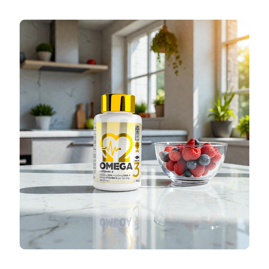 Opis: Dodatak prehrani za odrasle koji sadrži omega-3 masne kiseline iz koncentriranog ribljeg ulja, u kombinaciji s vitaminom E.