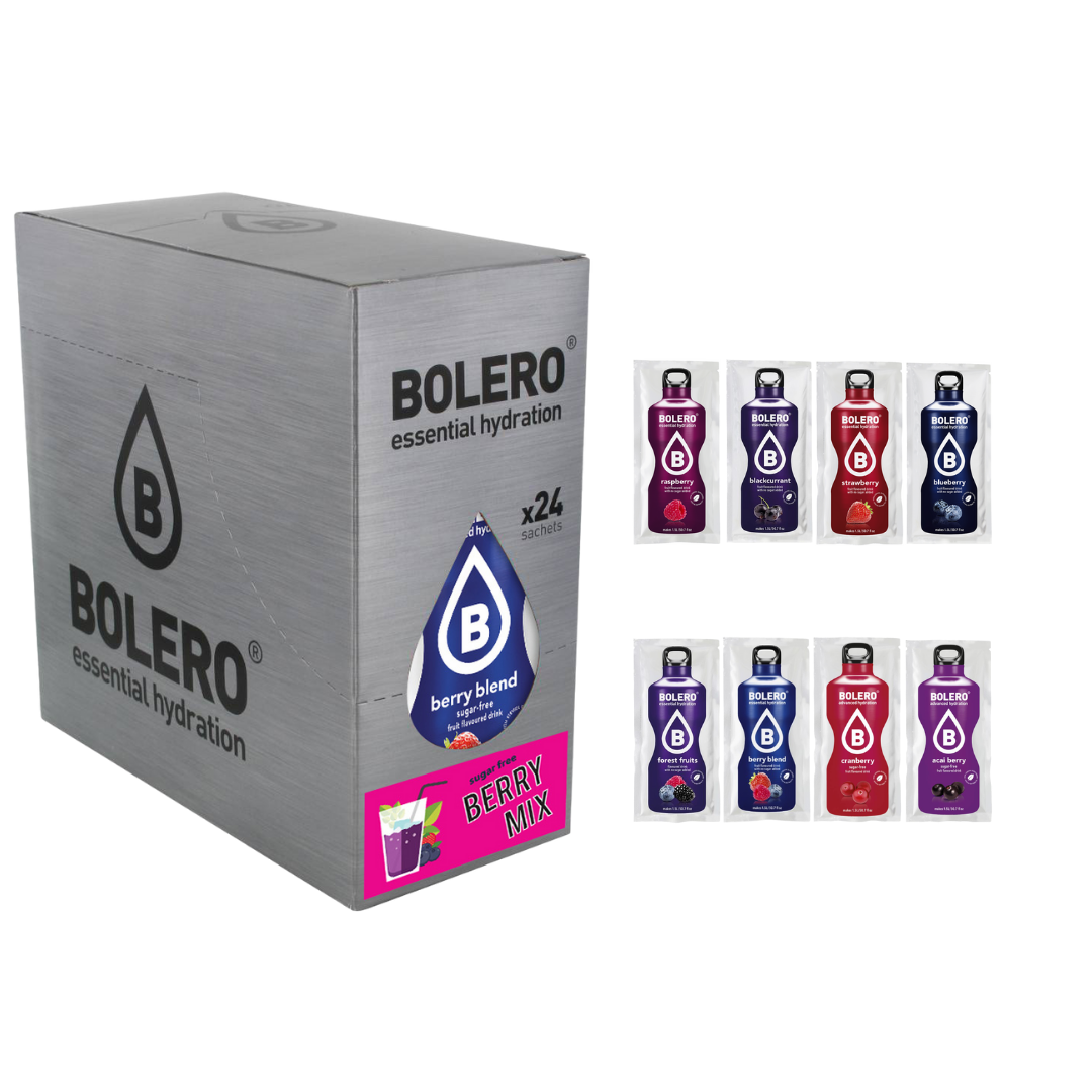 BOLERO BERRY MIX kutija sadrži 24 vrećice po 9 grama od kojih je svaka dovoljna za izradu od 1,5 litre do 3 litre napitka, ovisno o vašoj želji za intenzivnošću okusa. Paket je dovoljan za izradu od 36 do 72 litara napitka.