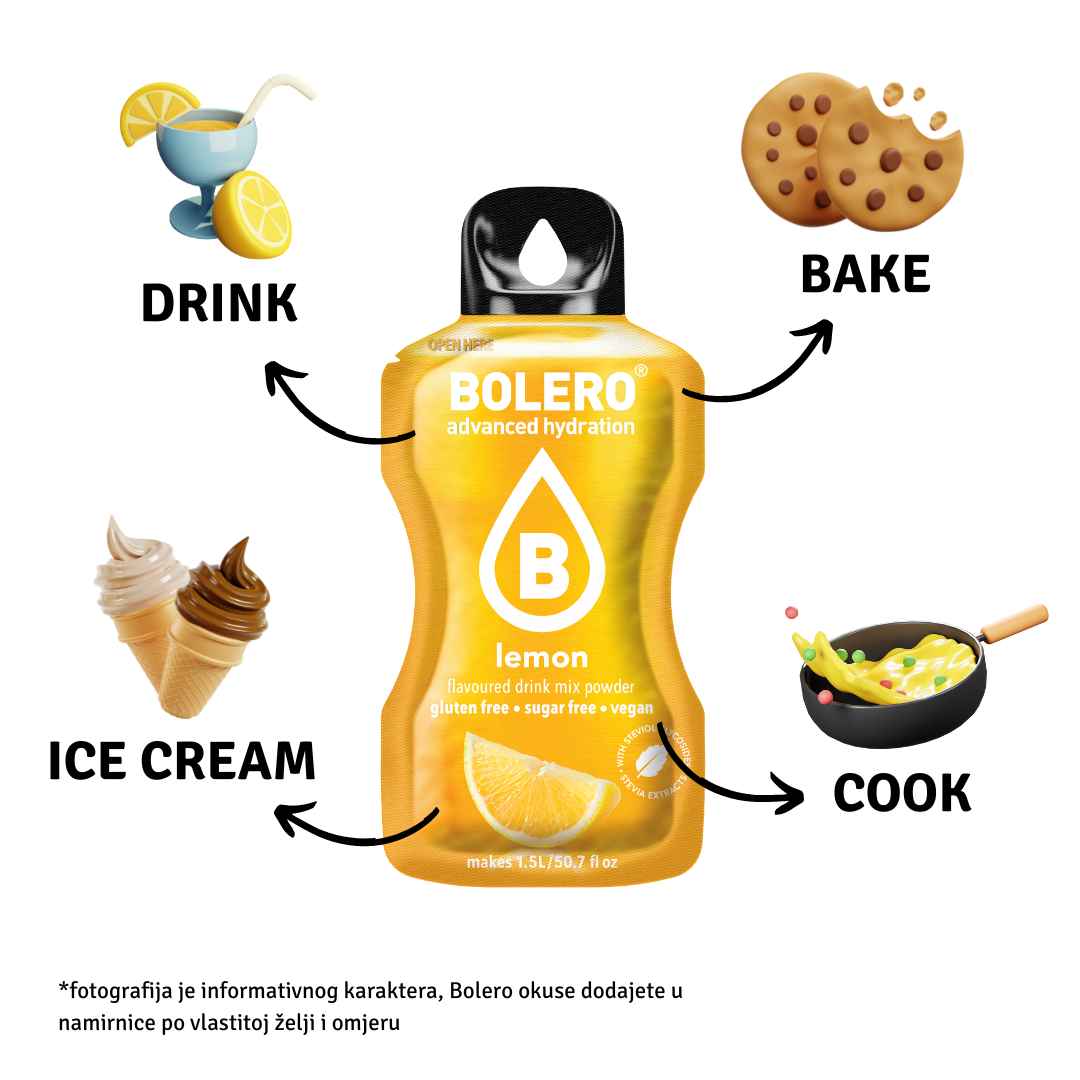 Osim klasično, kao sokove, Bolero možete koristiti u nizu različitih recepata. Bolero svojim okusom daje posebnu aromu kolačima, sladoledima, muffinima, pudinzima, smoothiejima i drugim slasticama.