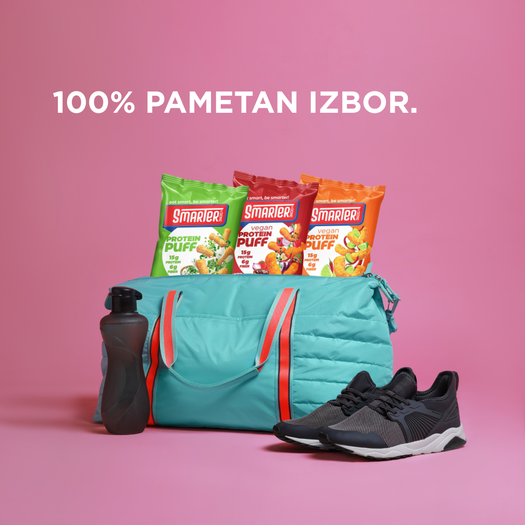 Smarter Snacks Protein Puffsi su hrskavi proteinski zalogaji koji kombiniraju biljne proteine i prehrambena vlakna u jednom praktičnom pakiranju. Predstavljaju zdraviju alternativu klasičnim smokijima i grickalicama, idealnu za sve koji žele uživati u snacku bez grižnje savjesti.