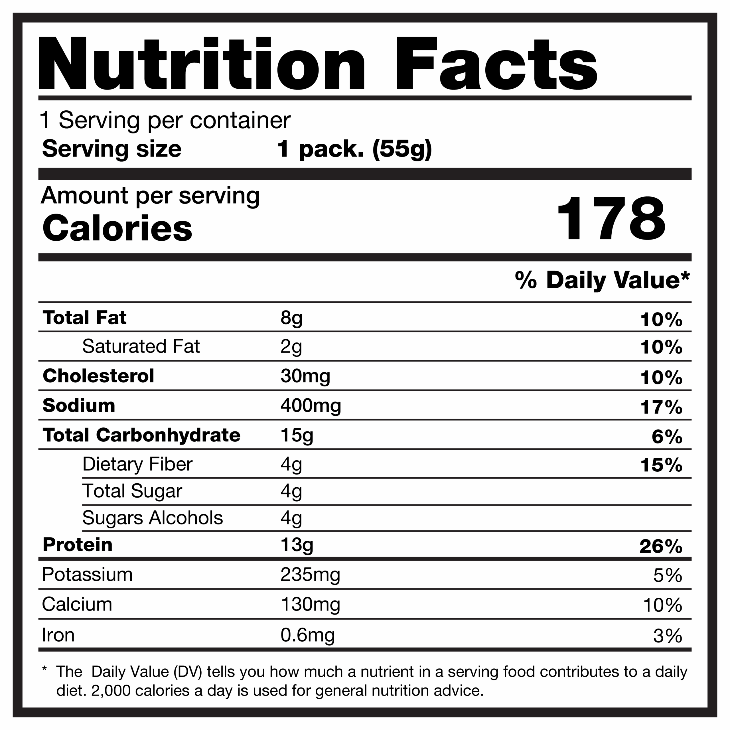 Sadrži 13 g proteina po porciji, bez dodanih šećera, aditiva i bojila, te je obogaćena inulinom za zdravu probavu. Zahvaljujući praktičnom single-pack pakiranju, spremna je za konzumaciju bilo kada - idealna za posao, trening ili putovanja.